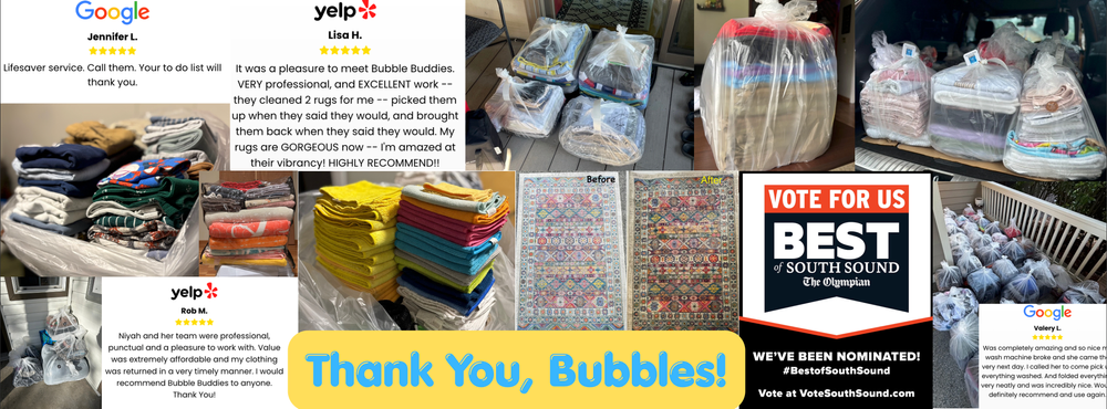 Bubble Buddies is Thurston, Pierce, and Grays Harbor’s most trusted mobile wash & fold laundry service. Our services are designed to make life easier for both our residential and commercial clients, affectionately known as our 'Bubbles'.